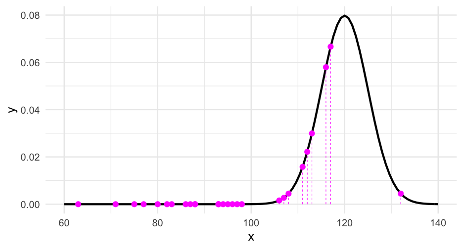 ## [1] -4.346989 -4.515878 -3.946989 -3.769211 -4.195878 -4.269211 -5.902544 -5.495878 -5.015878 -3.735878 -3.682544 -3.946989 -3.895878 -6.669211 -4.802544## [16] -4.062544 -4.269211 -3.735878 -3.646989 -4.002544 -3.706989 -3.662544 -3.946989 -4.002544 -3.706989 -3.735878 -3.635878sum(dnorm(iqs, mean = 100, sd = 15, log = TRUE))